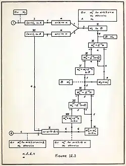 Klára and John von Neumann were socially active within the local academic community.[57] His white clapboard house on Westcott Road was one of Princeton's largest private residences.[58] He always wore formal suits.[59] He enjoyed Yiddish and "off-color" humor.[26] Von Neumann did some of his best work in noisy, chaotic environments.[60] In Princeton, he received complaints for playing extremely loud German march music.[61] According to Churchill Eisenhart, von Neumann could attend parties until the early hours of the morning and then deliver a lecture at 8:30.[62]
