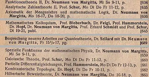Von Neumann's habilitation was completed on December 13, 1927, and he began to give lectures as a Privatdozent at the University of Berlin in 1928.[44] He was the youngest person elected Privatdozent in the university's history.[45] He began writing nearly one major mathematics paper per month.[46] In 1929, he briefly became a Privatdozent at the University of Hamburg, where the prospects of becoming a tenured professor were better,[47] then in October of that year moved to Princeton University as a visiting lecturer in mathematical physics.[48]