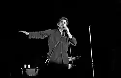 Cash used his stardom and economic status to bring awareness to the issues surrounding the Native American people.[68] Cash sang songs about indigenous humanity in an effort to confront the U.S. government. Many non-Native Americans did not address those topics in their music.[69] In 1965, Cash and June Carter appeared on Pete Seeger's TV show, Rainbow Quest, on which Cash explained his start as an activist for Native Americans:
