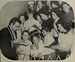 While in San Antonio, he had met Vivian Liberto, a woman of Sicilian, Irish, and German ancestry. They dated briefly before his departure. During the years he served overseas, they exchanged thousands of letters. He worked in West Germany as a Morse code operator, intercepting Soviet Army transmissions. While working this job, Cash was said to be the first American to learn the news of Joseph Stalin's death (supplied via Morse code). His daughter, Rosanne, later said that Cash had recounted the story many times over the years.[34][35][36] While at Landsberg, he created his first band, "The Landsberg Barbarians".[37] On July 3, 1954, he was honorably discharged as a staff sergeant, and he returned to Texas.[38] During his military service, he acquired a distinctive scar on the right side of his jaw as a result of surgery to remove a cyst.[39][40]
