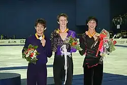 From left: Daisuke Takahashi (2nd), Stéphane Lambiel (1st), Johnny Weir (3rd).