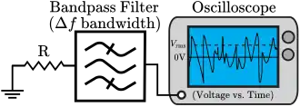 The square root of the mean square voltage yields the root mean square (RMS) voltage observed over the bandwidth :
