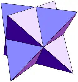 Among these three polyhedra, only the first, the elongated square gyrobicupola, is a Johnson solid. The second, the stella octangula, is not convex, as some of its diagonals (line segments connecting pairs of vertices) lie outside the shape. The third presents coplanar faces.