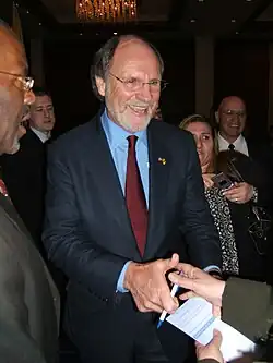 While in the Senate, he chaired the Democratic Senatorial Campaign Committee from 2003 to 2005.[59] In this role he was influential in convincing certain potential candidates to not run in order to avoid costly primaries in three key states during the 2004 United States Senate elections.[60] He also played a role in the selection of Senator John Edwards as a running mate for Senator John Kerry.[61] In 2002, Corzine called for the resignation of United States Securities and Exchange Commission Chairman Harvey Pitt.[62]