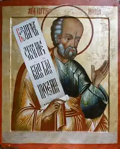 Jonah is regarded as a saint by a number of Christian denominations. His feast day in the Roman Catholic Church is on 21 September, according to the Martyrologium Romanum.[2] On the Eastern Orthodox liturgical calendar, Jonah's feast day is on 22 September (for those churches which follow the traditional Julian calendar; 22 September currently falls in October on the modern Gregorian calendar).[59] In the Armenian Apostolic Church, moveable feasts are held in commemoration of Jonah as a single prophet and as one of the Twelve Minor Prophets.[60][61][62] Jonah's mission to the Ninevites is commemorated by the Fast of Nineveh in Syriac and Oriental Orthodox Churches.[63] Jonah is commemorated as a prophet in the Calendar of Saints of the Missouri Synod of the Lutheran Church on 22 September.[64]