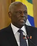 José Eduardo Van-Dúnem dos Santos (Portuguese pronunciation: [ʒuˈzɛ eˈðwaɾðu ðuʃ ˈsɐ̃tuʃ]; 28 August 1942 – 8 July 2022) was an Angolan politician and military officer who served as the second president of Angola from 1979 to 2017. As president, dos Santos was also the commander-in-chief of the Angolan Armed Forces (FAA) and president of the People's Movement for the Liberation of Angola (MPLA), the party that has ruled Angola since it won independence in 1975. By the time he stepped down in 2017, he was the second-longest-serving president in Africa, surpassed only by Teodoro Obiang Nguema Mbasogo of Equatorial Guinea.