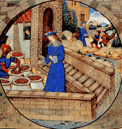 Joseph gave orders to his servants to fill their sacks with wheat: illuminated Bible by Raphaël de Mercatelli, Ghent, late 15th century.