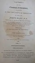 First page of a 1807 copy of volume I of Joseph Black's Lectures on the Elements of Chemistry -