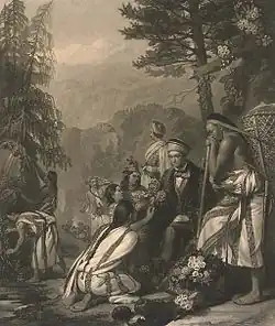An 1854 illustration showing Hooker with his Lepcha collectors in Sikkim (Mezzotint by William Walker after a painting by Frank Stone)