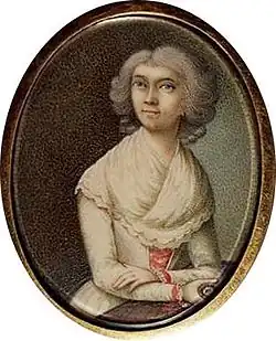 The remoteness of Esterháza, which was farther from Vienna than Eisenstadt, led Haydn gradually to feel more isolated and lonely.[33] He longed to visit Vienna because of his friendships there.[34] Of these, a particularly important one was with Maria Anna von Genzinger (1754–1793), the wife of Prince Nikolaus's personal physician in Vienna, who began a close, platonic relationship with the composer in 1789. Haydn wrote to Mrs. Genzinger often, expressing his loneliness at Esterháza and his happiness for the few occasions on which he was able to visit her in Vienna. Later on, Haydn wrote to her frequently from London. Her premature death in 1793 was a blow to Haydn, and his F minor variations for piano, Hob. XVII:6, may have been written in response to her death.[35]