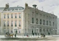 After fond farewells from Mozart and other friends,[42] Haydn departed from Vienna with Salomon on 15 December 1790, arriving in Calais in time to cross the English Channel on New Year's Day of 1791. It was the first time that the 58-year-old composer had seen the sea. Arriving in London, Haydn stayed with Salomon in Great Pulteney Street (near Piccadilly Circus)[43] working in a borrowed studio at the Broadwood piano firm nearby.[43]