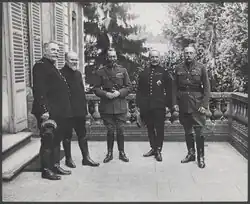 Joffre became leader of the Supreme War Council in 1918. That same year, he was elected to the American Philosophical Society.[82] When he retired in 1919, he was made a member of the Académie française and an International Honorary Member of the American Academy of Arts and Sciences.[83][84] In 1920 he presided over the Jocs Florals in Barcelona, a Catalan literary certamen (he was born in French Catalonia and his mother tongue was Catalan).