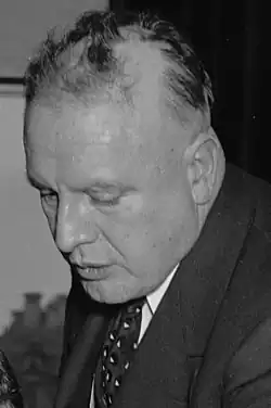In 1939, McCarthy had better success when he ran for the nonpartisan elected post of 10th District circuit judge.[22][23] McCarthy became the youngest circuit judge in the state's history by defeating incumbent Edgar V. Werner, who had been a judge for 24 years.[24] In the campaign, McCarthy lied about Werner's age of 66, claiming that he was 73, and so allegedly too old and infirm to handle the duties of his office.[25] Writing of Werner in Reds: McCarthyism In Twentieth-Century America, Ted Morgan wrote: "Pompous and condescending, he (Werner) was disliked by lawyers. His judgements had often been reversed by the Wisconsin Supreme Court, and he was so inefficient that he had piled up a huge backlog of cases."[26]