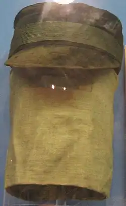Treves first met Merrick that November, at a private viewing that took place before Norman opened the shop for the day.[38] Treves later recalled in his 1923 Reminiscences that Merrick was "the most disgusting specimen of humanity that I had ever seen [...] at no time had I met with such a degraded or perverted version of a human being as this lone figure displayed."[44] The viewing lasted no more than 15 minutes, after which Treves returned to work. Later the same day, he sent Tuckett back to the shop to ask if Merrick might be willing to go to the hospital for an examination. Norman and Merrick both agreed to the request.[45] To allow him to travel the short distance without drawing undue attention, Merrick wore a disguise consisting of an oversized black cloak and a brown cap with a hessian sack covering his face, and he rode in a cab hired by Treves.[46] Although Treves stated that Merrick's outfit on this occasion included the black cloak and brown cap, there is evidence to suggest that Merrick acquired that particular costume a year later, while travelling with Sam Roper's Fair. If that were the case, Treves was remembering the clothing from a later meeting with Merrick.[47]