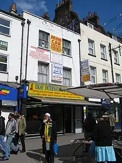 As Merrick was becoming a greater financial burden on his family, his father eventually secured him a hawker's licence enabling him to earn money selling items from the haberdashery shop, door to door.[25] This endeavour was unsuccessful because Merrick's facial deformities rendered his speech increasingly unintelligible, and prospective customers reacted with horror to his physical appearance. People refused to open the door to him, and they not only stared at him, but followed him out of curiosity.[25] Merrick failed to make enough money as a hawker to support himself. On returning home one day in 1877, he was severely beaten by his father and he left home for good.[26]
