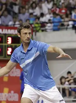 Juan Carlos Ferrero Donat (Spanish: [xwaŋ ˈkaɾlos feˈreɾo ðoˈnat];[a] born 12 February 1980) is a Spanish former professional tennis player and current coach. He was ranked as the world No. 1 in men's singles by the Association of Tennis Professionals (ATP) for a total of eight weeks. Ferrero won 16 singles titles on the ATP Tour, including the 2003 French Open and four Masters events. He was also runner-up at the 2002 French Open and 2003 US Open. He was nicknamed el Mosquito ("the Mosquito") for his speed and slender physical build.[1] Ferrero retired as a professional player in 2012.[2]