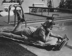 She was next cast in the film Royal Wedding with Fred Astaire in 1950 after June Allyson became pregnant. However, because Garland failed to report to the set on multiple occasions, the studio suspended her contract on June 17, 1950, replacing her with Jane Powell.[78] Reputable biographies published following Garland's death stated that after this dismissal, she slightly grazed her neck with a broken glass, requiring only a bandage. At the time, however, the public was informed that a despondent Garland had slashed her throat.[79] "All I could see ahead was more confusion," she later said of this suicide attempt. "I wanted to black out the future as well as the past. I wanted to hurt myself and everyone who had hurt me."[80] In September 1950, after 15 years with the studio, Garland and MGM parted company.[81][82]
