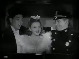 MGM found a winning formula when it paired Garland with Mickey Rooney in a string of what were known as "backyard musicals."[32] The duo first appeared together as supporting characters in Thoroughbreds Don't Cry (1937), a B movie. Garland was then cast in the fourth of the Hardy Family movies, Love Finds Andy Hardy (1938), as a literal girl next door to Rooney's character Andy Hardy, although Hardy's love interest was played by Lana Turner. They were cast as lead characters for the first time in Babes in Arms (1939), ultimately appearing in five additional films, including Hardy films Andy Hardy Meets Debutante (1940) and Life Begins for Andy Hardy (1941).