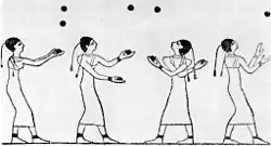 The earliest record of juggling is suggested in a panel from the 15th (1994 to 1781 B.C.) Beni Hasan tomb of an unknown Egyptian prince, showing female dancers and acrobats throwing balls.[10] Juggling has been recorded in many early cultures including Egyptian, Nabataean, Chinese, Indian, Greek, Roman, Norse, Aztec (Mexico) and Polynesian civilizations.[11][12][13]