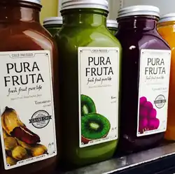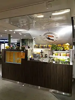 A juice bar is an establishment that primarily serves prepared juice beverages such as freshly squeezed or extracted fruit juices, juice blends, fruit smoothies (a thick fruit drink, often iced), or other juices such as fresh wheatgrass juice. Sometimes other solid ingredients or nutritional supplements may be added as boosters, such as fresh bananas, nuts or nut butter, bodybuilding supplements, soy protein powder, or others such as whey or hemp protein powders, wheat germ, spirulina, or chlorella. Also, if less juice is used with these same ingredients, drinks called health shakes may be produced.