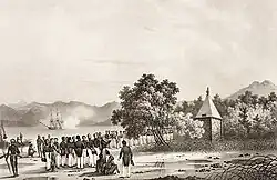 Inauguration of the monument erected in honour of La Pérouse, shipwrecked and lost on the island of Vanikoro.