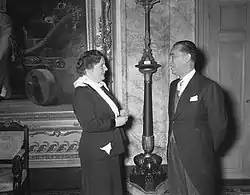 The queen was noted for her courtesy and kindness. In May 1959, for example, Polish-American ufologist George Adamski received a letter from the head of the Dutch Unidentified Flying Objects Society, Rey d'Aquilla, informing him that she had been contacted by Queen Juliana's palace and "that the Queen would like to receive you".[8] Adamski informed a London newspaper about the invitation, which prompted the court and cabinet to request that the queen cancel her meeting with Adamski, but the queen went ahead with the meeting, saying that "A hostess cannot slam the door in the face of her guests."[8] After the meeting, Dutch Aeronautical Association president Cornelis Kolff said: "The Queen showed an extraordinary interest in the whole subject."[8] The Dutch press put it more straightforwardly. According to Time magazine, newspaper de Volkskrant said: "The Dutch press could hardly be accused of concealing the facts last week. Once again, Queen Juliana's weakness for the preternatural had landed her back in the headlines: she had invited to the palace a crackpot from California who numbered among his friends men from Mars, Venus and other solar-system suburbs."[9]