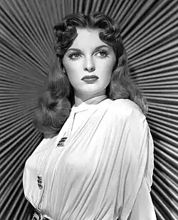 She made her film debut while still in high school, appearing under the name Julie London in Nabonga in 1944. She later starred in the 1947 film The Red House with Edward G. Robinson.[15] After a series of uncredited roles, she signed a contract with Warner Bros. Pictures, appearing in the war film Task Force (1949)[16] and the Western Return of the Frontiersman (1950).[17] She was cast in the lead role of Pat Boyd in the William Castle-directed The Fat Man (1951).[18] London completed shooting the film in August 1950.[19] After Warner Bros. dropped her contract,[17] London was offered a contract with Universal Pictures based on the role, but turned it down, opting instead to focus on her marriage to actor Jack Webb.[19]