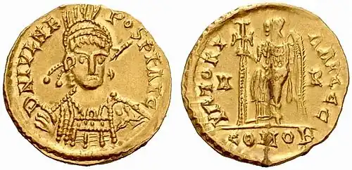 - ^ Upon Nepos's death, Odoacer, the King of Italy, recognized the eastern emperor Zeno as his suzerain.[1][2] It has been suggested that some western coins minted in Zeno's name were minted in Dalmatia in the immediate aftermath of Nepos' death, which would mean that Zeno's rule was swiftly accepted.[3]