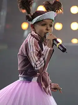 The origins of the contest date back to 2000 when Danmarks Radio (DR) held a song contest for Danish children that year and the following year.[4][5] The idea was extended to a Scandinavian song festival in 2002, MGP Nordic, with Denmark, Norway, and Sweden as participants.[6][7] In 2001 and 2002, Polish broadcaster Telewizja Polska (TVP) hosted two pilot editions of an international song contest for children in Konin with the name Eurokonkurs (English: Eurocontest) in 2001 and Światowy Konkurs Piosenki (English: World Song Contest) in 2002 but the whole project was called Eurokonkurs.[8][9] TVP went on to hold further editions in Konin between 2003 and 2006, some time of which after Poland's initial withdrawal from Junior Eurovision Song Contest. In 2006, Eurokonkurs returned as Światowe Talenty (English: World Talents) and was hosted by Dominika Rydz and Weronika Bochat, who represented Poland in 2004 as part of girl group KWADro.[10]