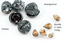 - Juniperus sect. Juniperus subsect. Oxycedrus – cones with three separate seeds; needles with two stomatal bands
