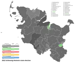 - almost the entire German state of Schleswig-Holstein except some parts of the Herzogtum Lauenburg district east of Ratzeburger See, de:Schaalseekanal, and Schaalsee