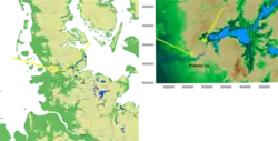 Some circular depressions in Jutland may be remnants of collapsed pingos that developed during the Last Ice Age.[3] The surface of southwest Jutland is dominated by sediments of the Saale glaciation, while deposits of the Weichselian glaciation form the surface layers in the northern and eastern Denmark. During the Saalian ice age, the ice sheet again reached Central Europe. Signs of another three glacial advances have been found in Denmark dating back to this period. The Saalian period left its mark on the landscape in West Jutland in the form of the so-called "hill islands" surrounded by melt water plains from the last ice age, the Weichselian period.[4]