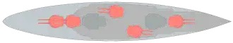 As was customary for capital ships of the dreadnought era, the ships were armed with five 50 cm (19.7 in) submerged torpedo tubes, which were supplied with a total of sixteen torpedoes. One tube was mounted in the bow and the other four were placed on the broadside, two on each side of the ship.[18] The torpedoes were the G7*** type, which carried a 195 kg (430 lb) warhead. They could be set at three speeds: 35 knots (65 km/h; 40 mph) for a range of 5,000 m (5,468 yd), 28.5 knots (52.8 km/h; 32.8 mph) for a range of 10,700 m (11,702 yd), or 25.5 knots (47.2 km/h; 29.3 mph) for a range of 12,510 m (13,680 yd).[31]