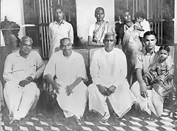 In 1930, Kamaraj participated in the Vedaranyam march organized by C. Rajagopalachari (Rajaji) in support of Gandhi's Salt March.[22] He was arrested for the first time and was imprisoned in Alipore Jail for almost two years. He was released before he served the two-year sentence as the Gandhi–Irwin Pact in 1931.[23] In 1931, he was appointed as a member of All India Congress Committee. In the next decade, the Congress in Madras province was divided into two led with one being led by Rajaji and the other led by S. Satyamurti. Kamaraj supported Satyamurti, as he aligned closely with the ideals propagated by him.[24] Satyamurti became his political guru while Kamaraj became a trusted aide of Satyamurti. In the 1931 elections to the regional unit of the Congress, he helped Satyamurti to win the post of vice-president.[25] In 1932, Kamaraj was arrested again on charges of sedition and inciting violence. He was sentenced to one year of rigorous imprisonment at Tiruchirappalli. He was later transferred to Vellore Central Prison, where he developed an association with revolutionaries like Jaidev Kapoor and Kamal Nath Tewari. In 1933-34, Kamaraj was charged with a conspiracy to murder John Anderson, then Governor of Bengal, which was part of a larger Madras Conspiracy Case. He was accused of supplying arms but was acquitted due to lack of evidence in 1935.[26]