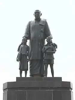 At the age of five, Kamaraj was enrolled in the local elementary school before being admitted to a different school.[5][6][10] His grandfather and father died in quick succession when he was only six years old, forcing his grandmother and mother to support the family.[5][6][11] He dropped out of school at the age of 12 and joined to work in the cloth shop run by his maternal uncle Karuppaih Nadar.[11][12][13] He learnt the martial art silambam and boxing. He also spent time singing bhajans of Murugan along with the locals.[11]