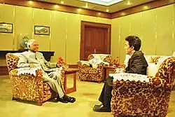 After his retirement, Narayanan served as the Vice-Chancellor of Jawaharlal Nehru University (JNU) in New Delhi from 3 January 1979 – 14 October 1980; he would later describe this experience as the foundation for his public life.[30] Subsequently, he was recalled from retirement to serve as Indian Ambassador to the United States from 1980 to 1984, under the Indira Gandhi administration.[31] Narayanan's tenures as Indian ambassador to China, the first such high level Indian diplomatic posting in that country after the 1962 Sino-Indian War, and to the US where he helped arrange Ms. Gandhi's landmark 1982 visit to Washington during the Reagan presidency helped mend India's strained relations with both these countries.[32][33] Nehru, who had also been the Minister for External Affairs during his 16 years as PM, held that K. R. Narayanan was "the best diplomat of the country."(1955)