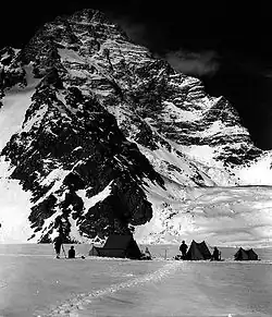 The following year, the 1939 American expedition led by Fritz Wiessner came within 200 metres (660 ft) of the summit but ended in disaster when Dudley Wolfe, Pasang Kikuli, Pasang Kitar, and Pintso disappeared high on the mountain.[47][48]