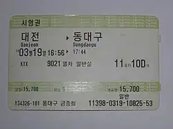- ^ "KTX 운임 및 예매기간 조정 알림" (in Korean). Korail. 2005-04-30. Archived from the original on 2011-07-22. Retrieved 2010-11-04.