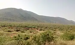 Kadapa in the Rayalaseema region of Andhra Pradesh is located at 14°28′N 78°49′E / 14.47°N 78.82°E about 250 km from Bangalore, 260 km from Chennai, 360 km from Vijayawada and 410 km from Hyderabad.[7] The city is situated in the Bugga vanka or Ralla Vanka rivers bordered by the Palakondas to the south and to the east by a patch of hills casting north for the Lankamalas on Penna's other side.[8] It has an average elevation of 138 metres (452 ft).[9] Veligonda hills separates the districts of Nellore and Kadapa.[10]