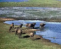Water buffalo had a large influence on the Kakadu region as well. By the 1880s the number of buffaloes released from early settlements had increased to such an extent that commercial harvesting of hides and horns was economically viable. The industry began on the Adelaide River, close to Darwin, and moved east to the Mary River and Alligator Rivers regions.