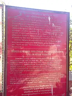 Information kiosk at Bhalka, the place from where Krishna left for his realm in 3102 BCE.