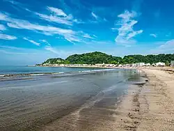 Kamakura is crossed by the Namerigawa river, which goes from the Asaina Pass in northern Kamakura to the beach in Yuigahama for a total length of about 8 kilometers (5 mi). The river marks the border between Zaimokuza and Yuigahama.