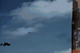 An A6M Zero (A6M2 Model 21) towards the end of its run at the escort carrier USS White Plains on 25 October 1944. The aircraft exploded in mid-air moments after the picture was taken, scattering debris across the deck.
