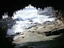A network of limestone caves hidden beneath the surface, especially along the southern and western coasts of the island, are estimated to have formed between one and two million years ago. They were formed from shell fragments from the exposed seabed around this time, after the dunes hardened over time, and rainwater dissolved the soft limestone to create the caverns. Before the 2020 bushfires, 120 caves had been discovered. Speleologists who have been exploring the land devegetated by the fires had found a further 150 caves by December 2025. They have also found previously undocumented species living in the caves. Most of these caves are not open to the public, but Kelly's Hill Caves have been a tourist attraction since the early 20th century.[28]