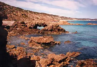 Kangaroo Island separated from mainland Australia around 10,000 years ago, due to rising sea level after the last glacial period. Known as (Karta) Pintingga ('Island of the Dead') by the mainland Aboriginal peoples, the existence of stone tools and shell middens shows that Aboriginal people once lived on Kangaroo Island.[5][6] The people disappeared from the archaeological record sometime after the land became an island;[7] it is thought that they occupied it as long ago as 16,000 years before the present and may have only disappeared from the island as recently as 2000 years ago.[8] There is however evidence of the Kartan people on the mainland, for instance at Hallett Cove.[9]