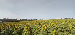 As of 2015, Kansas was among the most productive agricultural states, producing high yields of wheat, corn, sorghum, and soybeans.[21] In addition to its traditional strength in agriculture, Kansas possesses an extensive aerospace industry. Kansas, which has an area of 82,278 square miles (213,100 square kilometers) is the 15th-largest state by area, the 36th most-populous of the 50 states, with a population of 2,940,865[22] according to the 2020 census, and the 10th least densely populated. Residents of Kansas are called Kansans. Mount Sunflower is Kansas's highest point at 4,039 feet (1,231 meters).[23]