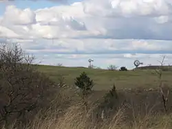 In Kansas, there are currently 238 species of rare animals and 400 rare plants.[40] Among those include: Smooth rockress, Virginia rail, Western Grotto Salamander, Royal Fern, Turkey-tangle, Bobolink, Cave salamander, Mead's Milkweed, Western Prairie Fringed Orchid, Gray bat, Snowy Plover, Strecker's Chorus Frog, Peregrine falcon, Arkansas River Shiner, Whooping Crane, and Black-footed ferret.[41][42] Common animal species and grasses include: crows, deer, lesser prairie-chicken, mice, moles, Virginia opossum, prairie dogs, raccoon, Eastern Gama Grass, Prairie Dropseed, Indian Grass, little bluestem, Switch grass, Northern Sea Oats, Tussock Sedge, Sideoats grama, and Big Bluestem.[43][44]