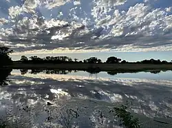 The western third of the state, lying in the great central plain of the United States, has a generally flat or undulating surface, while the eastern third has many hills and forests; the middle third is generally hilly, with more sparse vegetation than the eastern third.[35] The land gradually rises from east to west; its altitude ranges from 684 ft (208 m) along the Verdigris River at Coffeyville in Montgomery County, to 4,039 ft (1,231 m) at Mount Sunflower, 0.5 miles (0.80 kilometers) from the Colorado border, in Wallace County. It is a common misconception that Kansas is the flattest state in the nation—in 2003, a tongue-in-cheek study famously declared the state "flatter than a pancake".[36] In fact, Kansas has a maximum topographic relief of 3,360 ft (1,020 m),[37] making it the 23rd flattest U.S. state measured by maximum relief.[38]