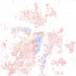 In 1950, African Americans represented 12.2% of Kansas City's population.[20] The city's most populous ethnic group, non-Hispanic whites,[29] declined from 89.5% in 1930 to 54.9% in 2010.[20]