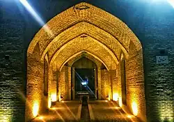 Karaj was mostly significant as a stage on the road between Tehran and Qazvin.[14] In Safavid times, a stone bridge was built that served as the main crossing into the town.[14] The large Shah-Abbasi Caravansarai, located at the southeast of Towhid Square, was built in the same era, under the rule of Šāh Esmāil.